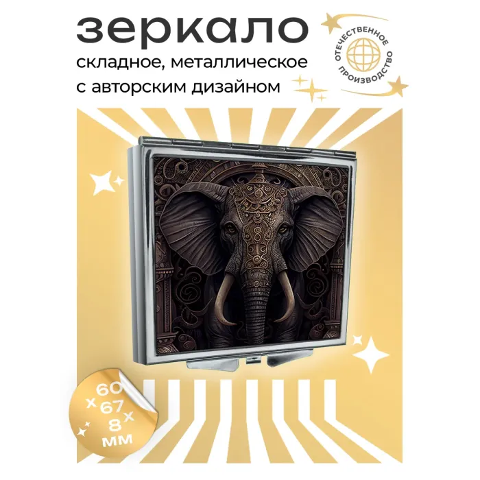 Складное зеркало квадратной формы с изображением слона. Сувенирный и интерьерный декор.