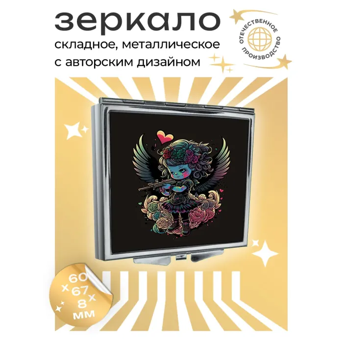 Складное зеркало квадратное Девочка воин ZER2-0277