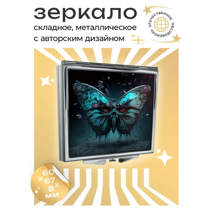 Складное зеркало квадратное Мотылек мертвая голова ZER2-0285