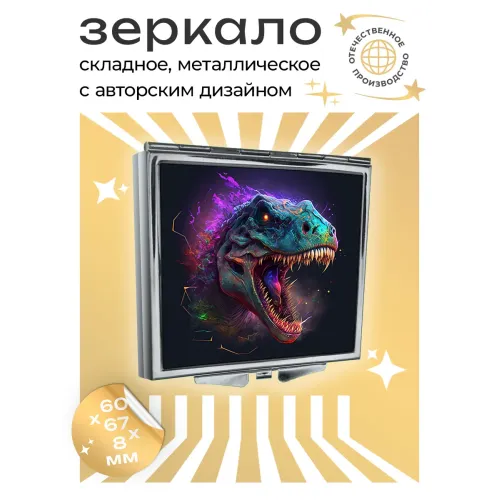 Складное зеркало квадратной формы с изображением динозавра. Сувенирный аксессуар.