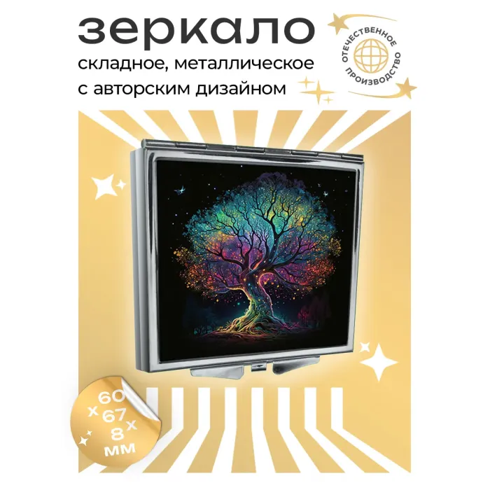 Складное квадратное зеркало с изображением «Дерево жизни» для личного использования.