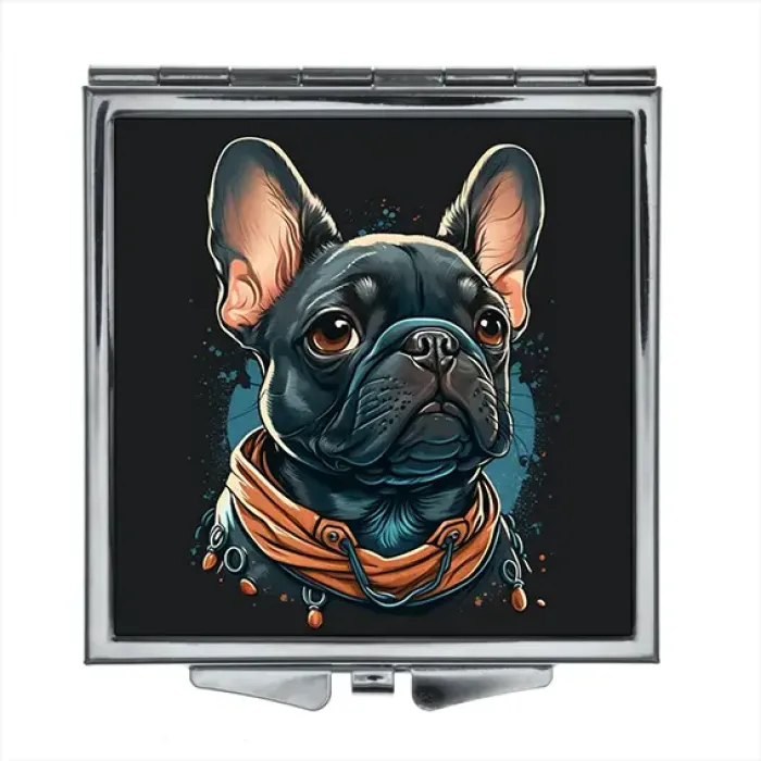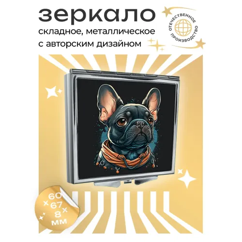 Складное квадратное зеркало с полноцветным изображением мопса. Сувенирный аксессуар.