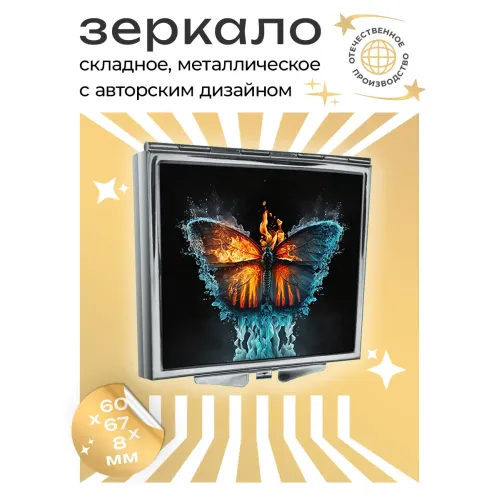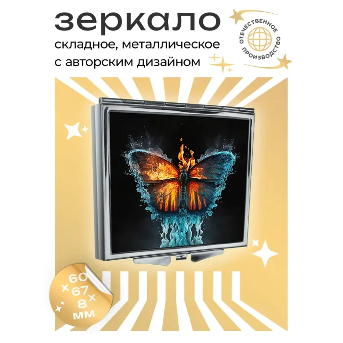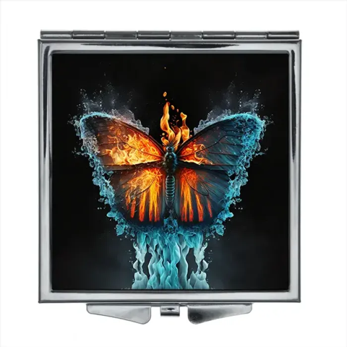 Складное зеркало квадратное Огонь и лед бабочка ZER2-0319