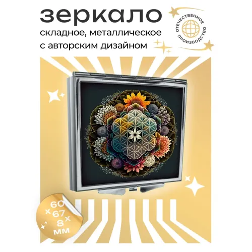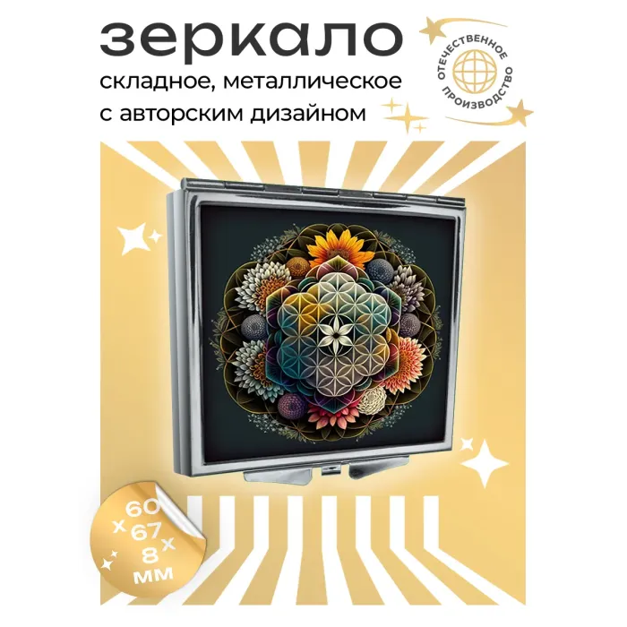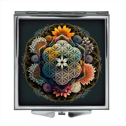 Складное зеркало квадратной формы с изображением «Цветок жизни».