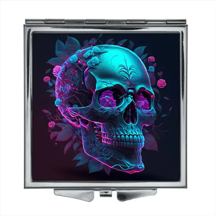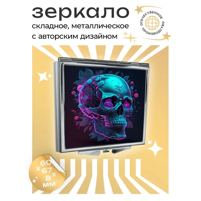 Складное зеркало квадратной формы с изображением черепа. Сувенирный аксессуар.