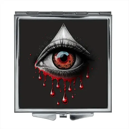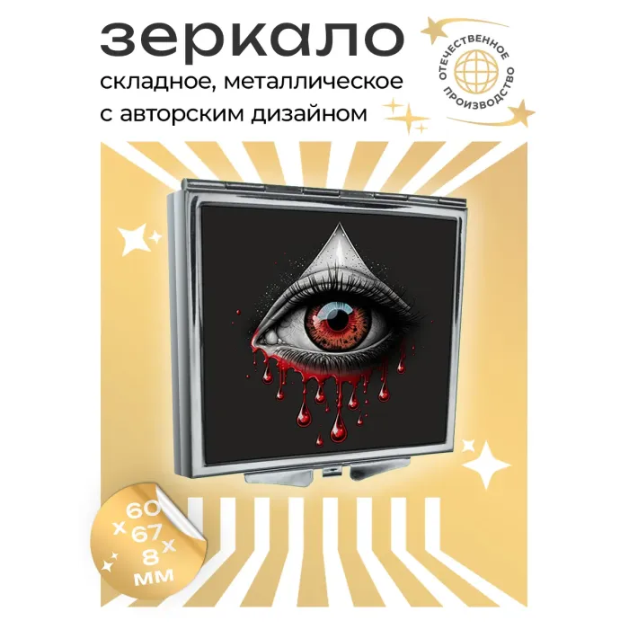 Складное зеркало квадратной формы с полноцветной печатью изображения на металлической поверхности.