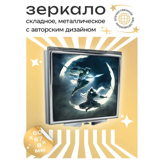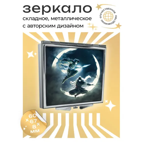 Складное зеркало квадратной формы с полноцветным изображением Ниндзя.