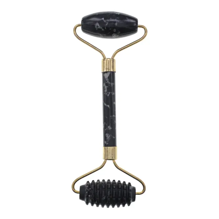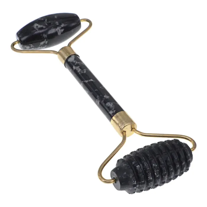 Двойной массажёр-валик для ухода за кожей из натурального чёрного нефрита.