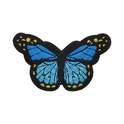 Нашивка для одежды и аксессуаров в виде бабочки, выполнена машинной вышивкой на тканевой основе.