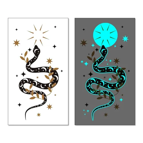 Временная светящаяся татуировка в виде змеи. Наклейка-переводка для кратковременного украшения кожи.