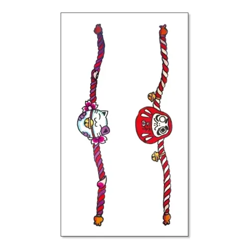 Временная татуировка Бодхидхарма и Манеки-Неко — это уникальная наклейка-переводка размером 10,5х6 см, которая позволяет украсить тело на короткий срок. Эта татуировка символизирует удачу и процветание, что делает её отличным выбором для особых мероприятий или праздников.