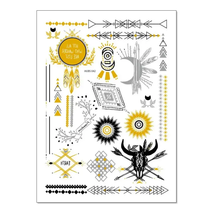 Временная татуировка-переводка с металлическим блеском, имитирующая украшения или узоры мехенди.