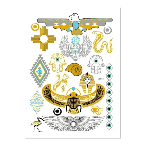 Временная татуировка с металлическим блеском, имитирующая золотые и серебряные узоры.