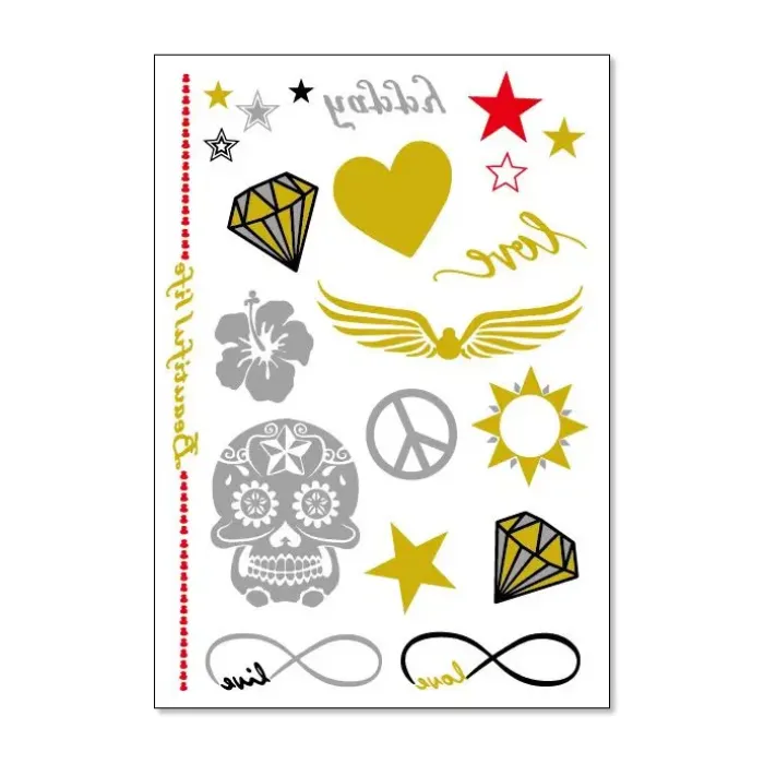 Назначение и особенности: Временный аксессуар для кожи. Наносится путём переноса с защитной плёнки. Срок ношения — от двух дней до недели.