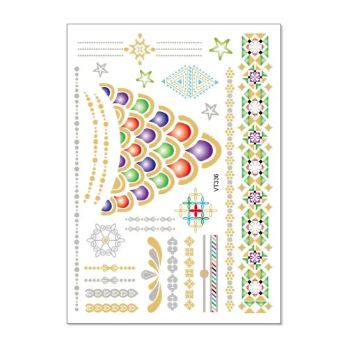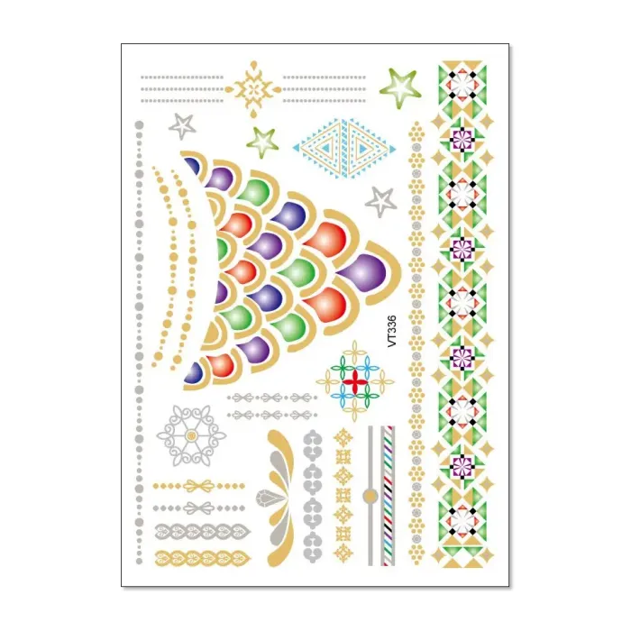 Временная татуировка-переводка с металлическим блеском, имитирующая украшения или узоры мехенди.