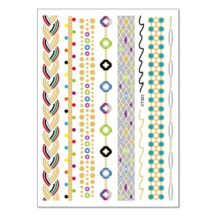 Временная татуировка-переводка с металлическим блеском, имитирующая украшения или узоры мехенди.