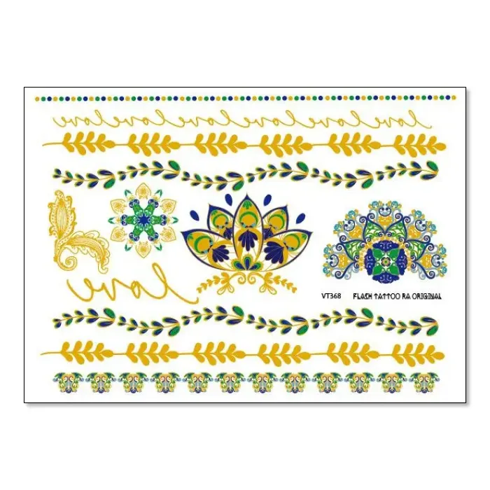 Временная татуировка-переводка с металлическим блеском, имитирующая украшения или узоры мехенди.