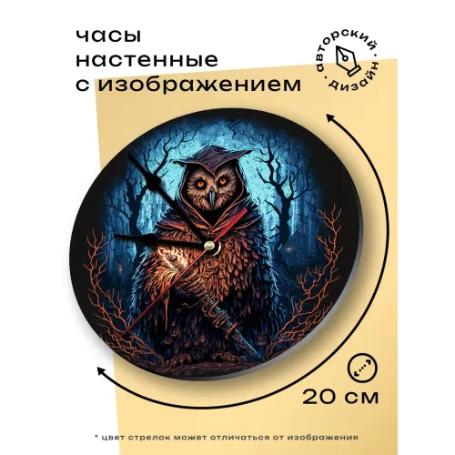 Настенные часы с изображением филина. Циферблат диаметром 20 см выполнен из вспененного пластика ПВХ.