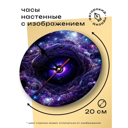 Настенные часы с циферблатом диаметром 20 см из вспененного пластика ПВХ в дизайне «Чёрная дыра».