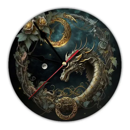 Часы настенные Дракон и лунница 20см, пластик MCH160