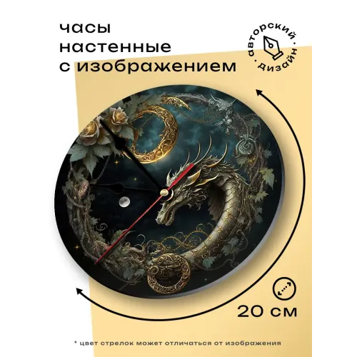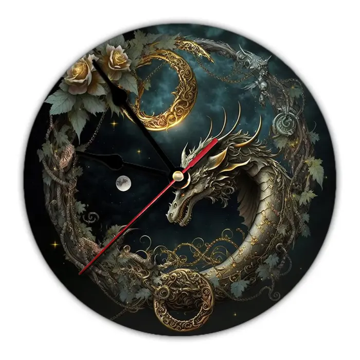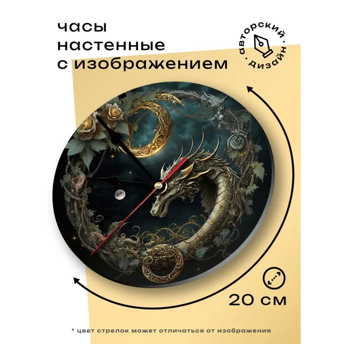 Настенные часы с изображением дракона и лунницы. Циферблат диаметром 20 см выполнен из вспененного пластика ПВХ.