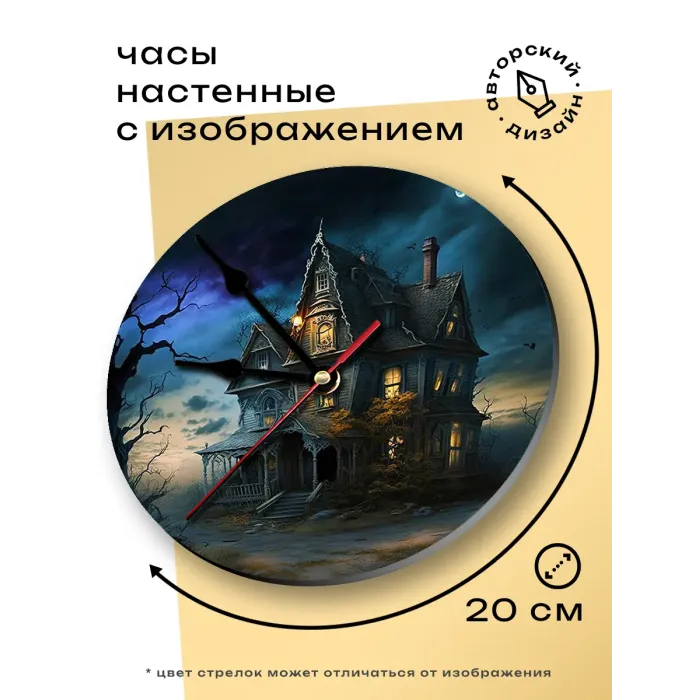 Размеры и комплектация: Диаметр циферблата 20 см. Упаковка: картонная коробка.