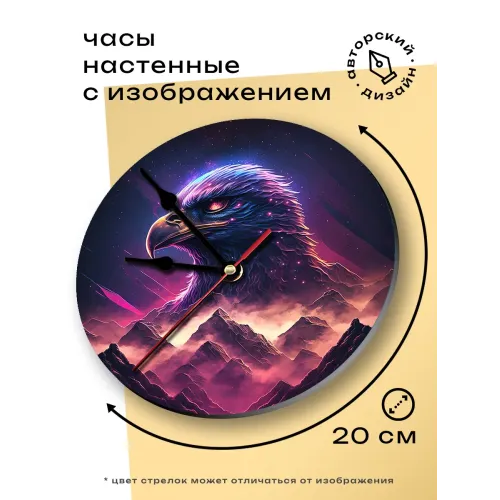 Настенные часы с изображением орла. Циферблат диаметром 20 см изготовлен из вспененного пластика ПВХ.