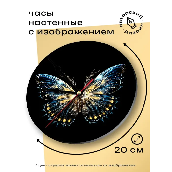 Настенные часы с циферблатом в форме бабочки диаметром 20 см, выполненные из вспененного пластика ПВХ.