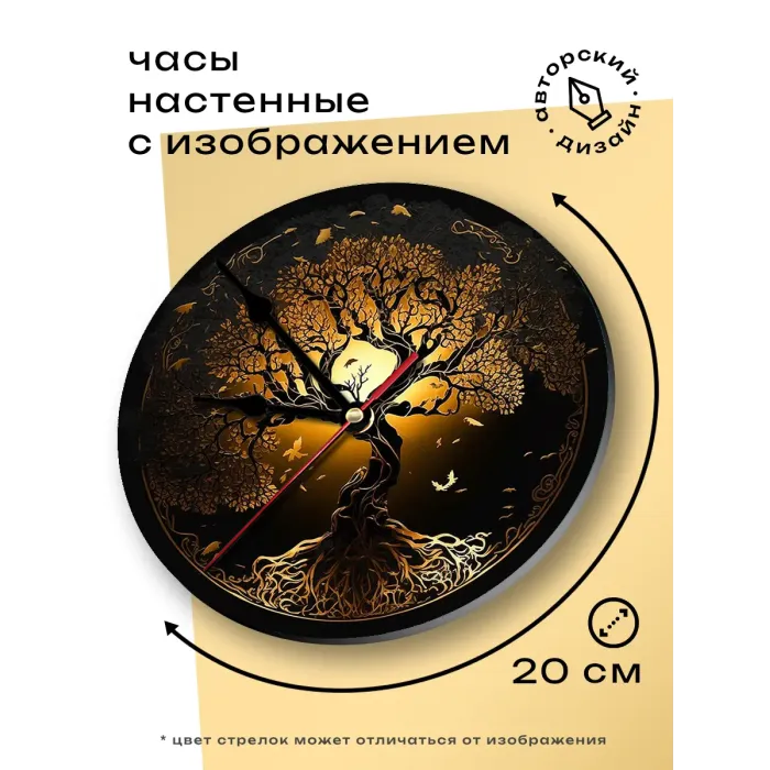 Настенные часы с дизайном «Дерево жизни». Циферблат диаметром 20 см выполнен из вспененного пластика ПВХ.