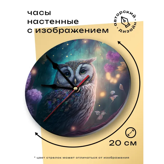 Настенные часы «Филин» с циферблатом диаметром 20 см, изготовленные из вспененного пластика ПВХ.