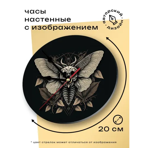 Часы настенные Мотылек мертвая голова 20см, пластик MCH187