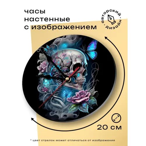 Настенные часы с дизайном в виде черепа. Циферблат диаметром 20 см выполнен из вспененного пластика ПВХ.