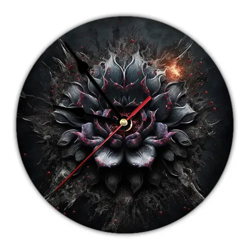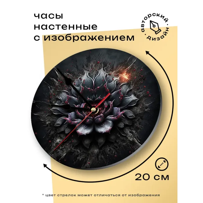 Настенные часы с изображением лотоса. Материал — вспененный пластик ПВХ, крепление — петля на задней стороне.