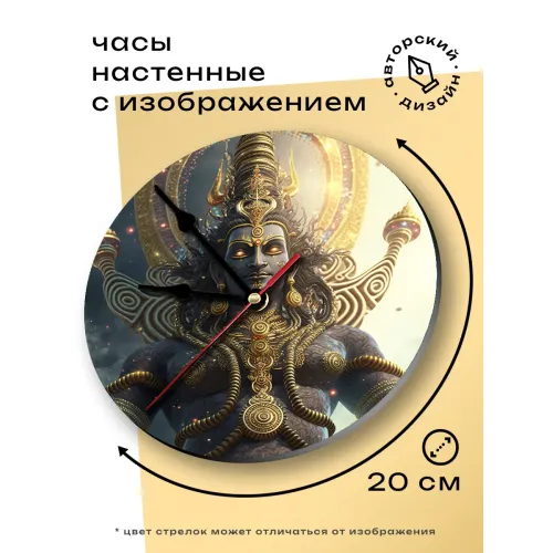 Настенные часы с изображением Шивы. Циферблат диаметром 20 см выполнен из вспененного пластика ПВХ.