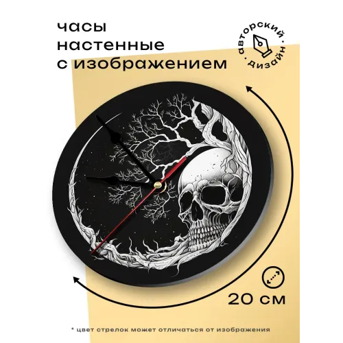 Настенные часы с дизайном в виде черепа. Циферблат диаметром 20 см выполнен из вспененного пластика ПВХ.