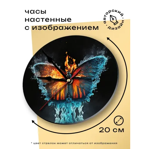 Часы настенные Огонь и лед бабочка 20 см, пластик MCH208