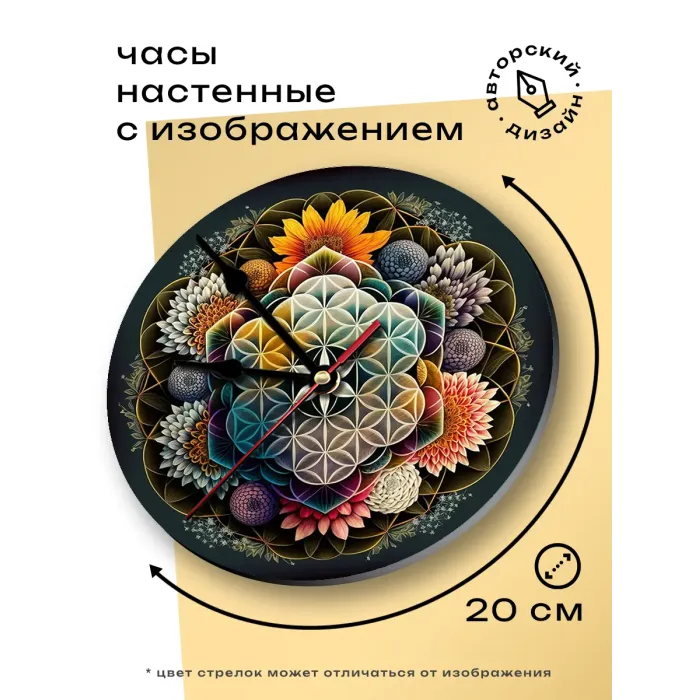 Настенные часы с циферблатом диаметром 20 см. Дизайн выполнен в виде символа «Цветок жизни».