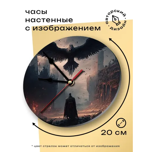 Настенные часы с изображением ворона и мага. Циферблат диаметром 20 см выполнен из вспененного пластика ПВХ.