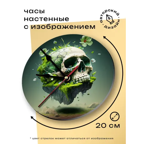 Настенные часы с дизайном в виде черепа. Циферблат выполнен из вспененного пластика ПВХ.