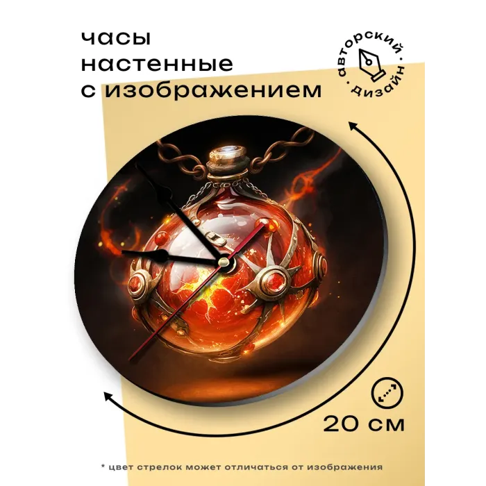 Назначение и особенности: Настенные часы для интерьерного декора. Крепление осуществляется с помощью петли на корпусе.