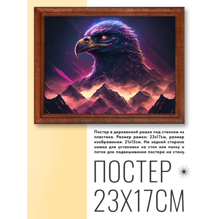 Постер в рамке для интерьерного декора. Деревянная рамка с пластиковым стеклом, изображение орла.