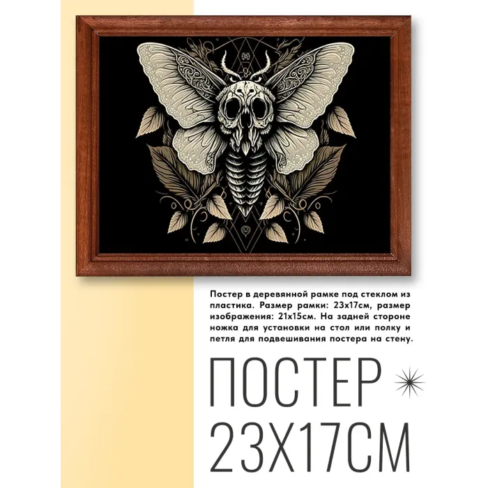 Постер в рамке 22х17см Мотылек мертвая голова POSG-0217