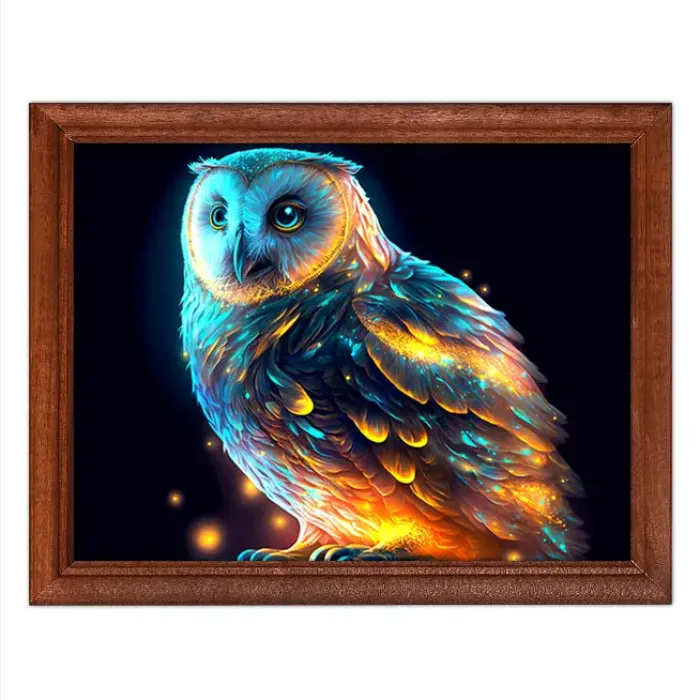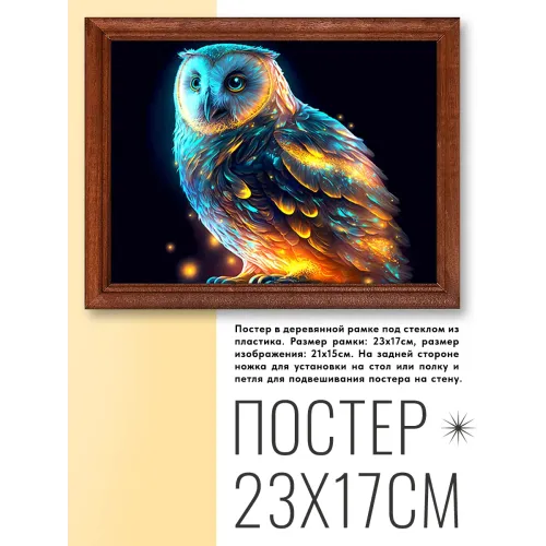 Постер в рамке с изображением совы для интерьерного декора. Деревянная рама под пластиковым стеклом.