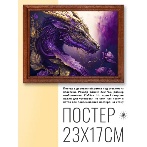 Постер в рамке с изображением дракона для интерьерного декора. Деревянная рама под пластиковым стеклом.