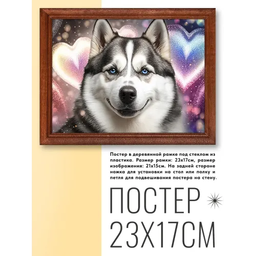 Постер в рамке для интерьерного декора. Изображение хаски.