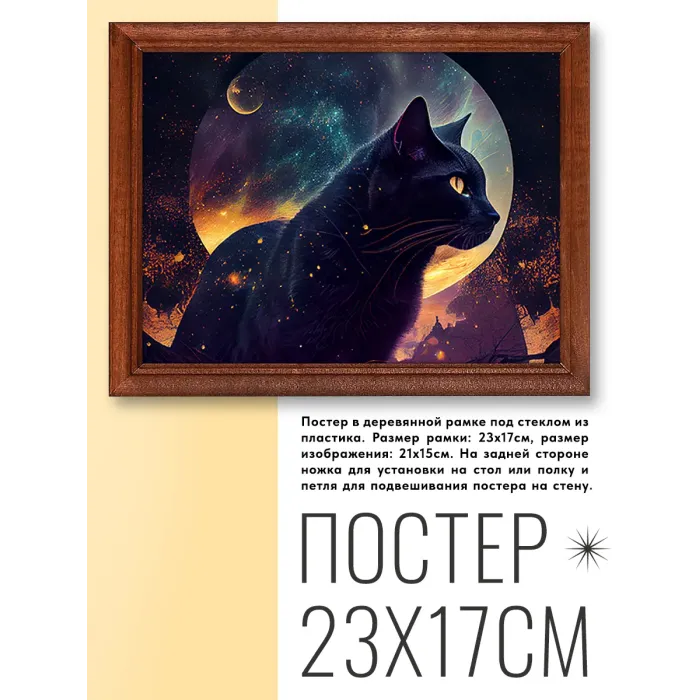 Постер в рамке для интерьерного декора. Деревянная рамка с пластиковым стеклом и изображением кота.