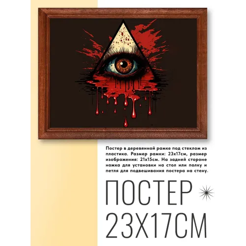 Постер в рамке для интерьерного декора. Деревянная рамка с пластиковым стеклом и изображением глаза.