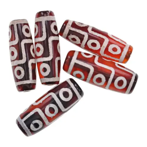 Тибетская бусина Дзи 9 глаз, нат. агат, 1 шт., ~30х11мм BDZS-050
