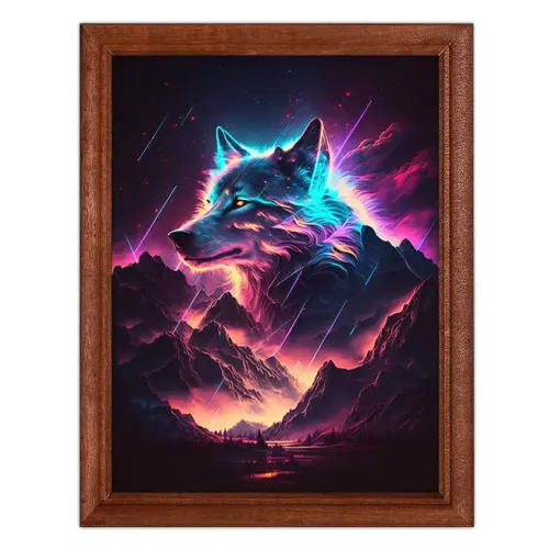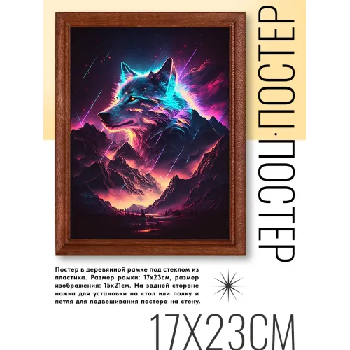 Постер в рамке для интерьерного декора. Изображение волка. Рама деревянная со стеклом.