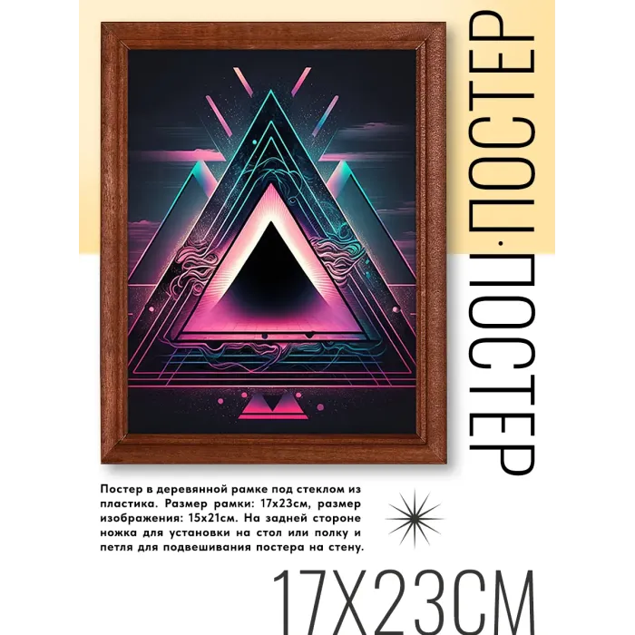 Постер в рамке для интерьерного декора. Деревянная рамка с пластиковым стеклом и изображением пирамид.